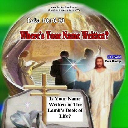 • 20 Nevertheless do not rejoice in this, that the spirits are subject to you, but rather rejoice because your names are written in heaven."