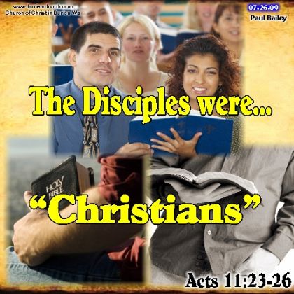 • Acts 11:26 And when he had found him, he brought him to Antioch. So it was that for a whole year they assembled with the church and taught a great many people. And the disciples were first (divinely) called Christians in Antioch.