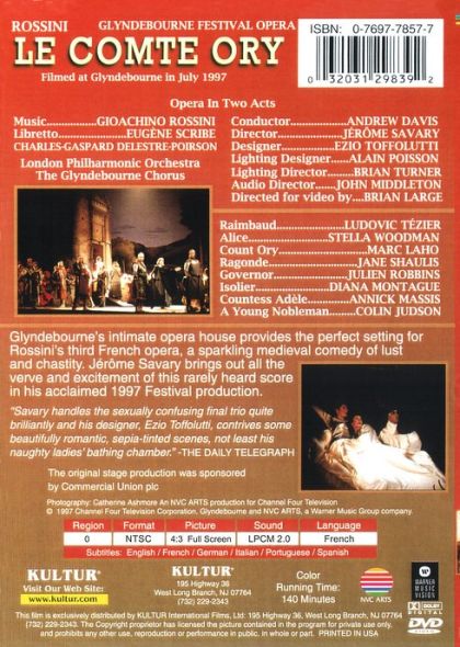Glyndebourne's intimate opera house provides the perfect setting for Rossini's third French opera, a sparkling medieval comedy of lust and chastity. Jérôme Savary brings out all the verve and excitement of this rarely heard score in his acclaimed 1997 Festival production.
