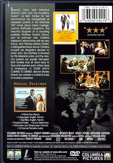 Matt Drayton (Spencer Tracy) and his wife Christina Drayton (Katherine Hepburn) are ecstatic to hear that their daughter Joey (Katharine Houghton) is returning from abroad with her fiancé, the respectable Dr. John Prentice (Sidney Poitier). They are planning a great dinner to meet John and his parents. Mr. Prentice (Roy Glenn) and his wife Mrs. Prentice (Beah Richards) will be meeting Joey for the first time as well. The Draytons are surprised when John turns out to be an African American. The Prentices are equally surprised with Joey. John and Joey are planning on flying to Europe that night to get married, but John secretly tells Mr. Drayton that he will not marry Joey without his approval. The rest of the night is spent with the Drayton and Prentice fathers, who are staunchly against the marriage, deciding whether or not to consent. All the while they are being swayed by their wives whom have only their children’s happiness in mind.