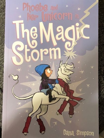 This Phoebe and Her Unicorn adventure features one big magical storm of a story in which Phoebe and Marigold experience a bizarre and fascinating mystery.Phoebe and Marigold decide to investigate a powerful storm that is wreaking havoc with the electricity in their town. The adults think it’s just winter weather, but Phoebe and Marigold soon discover that all is not what it seems to be, and that the storm may have a magical cause. To solve the case, they team up with Max, who is desperate for the electricity to return so he can play video games, and frenemy Dakota, who is aided by her goblin minions. Together, they must get to the bottom of the mystery and save the town from the magic storm.