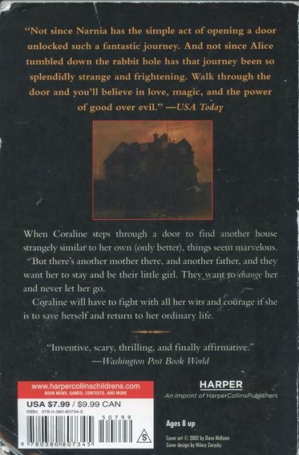 "Coraline discovered the door a little while after they moved into the house. . . ." When Coraline steps through a door to find another house strangely similar to her own (only better), things seem marvelous. But there's another mother there, and another father, and they want her to stay and be their little girl. They want to change her and never let her go. Coraline will have to fight with all her wit and courage if she is to save herself and return to her ordinary life. Celebrating ten years of Neil Gaiman's first modern classic for young readers, this edition is enriched with a brand-new foreword from the author, a reader's guide, and more.