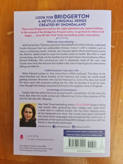 While you were sleeping...With her brother Thomas injured on the battlefront in the Colonies, orphaned Cecilia Harcourt has two unbearable choices: move in with a maiden aunt or marry a scheming cousin. Instead, she chooses option three and travels across the Atlantic, determined to nurse her brother back to health. But after a week of searching, she finds not her brother but his best friend, the handsome officer Edward Rokesby. He's unconscious and in desperate need of her care, and Cecilia vows that she will save this soldier's life, even if staying by his side means telling one little lie... I told everyone I was your wifeWhen Edward comes to, he's more than a little confused. The blow to his head knocked out three months of his memory, but surely he would recall getting married. He knows who Cecilia Harcourt is—even if he does not recall her face—and with everyone calling her his wife, he decides it must be true, even though he'd always assumed he'd marry his neighbor back in England. If only it were true...Cecilia risks her entire future by giving herself—completely—to the man she loves. But when the truth comes out, Edward may have a few surprises of his own for the new Mrs. Rokesby.
