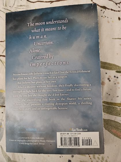 The gripping first installment in global bestselling author Tahereh Mafi’s epic, romantic Shatter Me series.One touch is all it takes. One touch, and Juliette Ferrars can leave a fully grown man gasping for air. One touch, and she can kill.No one knows why Juliette has such incredible power. It feels like a curse, a burden that one person alone could never bear. But The Reestablishment sees it as a gift, sees her as an opportunity. An opportunity for a deadly weapon.Juliette has never fought for herself before. But when she’s reunited with the one person who ever cared about her, she finds a strength she never knew she had.Includes a special sneak peek of This Woven Kingdom, the first book in Tahereh Mafi’s bestselling fantasy series inspired by Persian folklore!