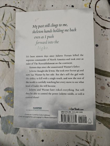 The girl with the power to kill with a single touch now has the world in the palm of her hand. Juliette Ferrars thought she’d won. She took over Sector 45, was named the new Supreme Commander of North America, and now has Warner by her side. But when tragedy strikes, she must confront the darkness that dwells both around and inside her.