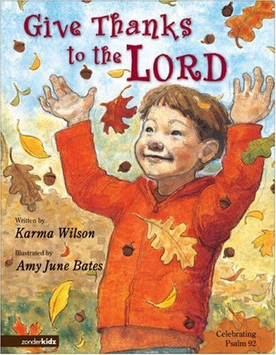 Written by Karma Wilson, an established awardwinning author. In this heartwarming story that references Psalm 92, award-winning children's author Karma Wilson tells a story about the Thanksgiving holiday that hits just the right tone. Told from the point of view of one young member of an extended family, Give Thanks to the Lord celebrates all the joys of the autumn holiday, from the arrival of distant relatives to a cozy house filled with noisy good cheer to apple cider and the delicious smells of roasting turkey and baking pies. And just when mouths are watering, the family sits down, holds hands, and says a prayer of thanks to God for 'food and fun and family, all the wonderful things we see.' Young readers will delight in each tender rhyme as they learn to appreciate their own many blessings in this full-color picture book for kids. KARMA WILSON Her first poem was published at the tender age of six. The poem was ironically titled, 'I Don't Wanna Write a Poem!' Growing up, she had no desire to write. But Providence had different plans, and now Karma writes poems for a living when she's not busy being a wife and raising three kids. In her spare hours Karma spends time in the wilderness, lifts weights, cooks, and kickboxes. And she loves writing. Karma lives in Fione, MT. AMY JUNE BATES has illustrated dozens of children's books. She lives in Ann Arbor, MI, with her husband and their son, Evan.