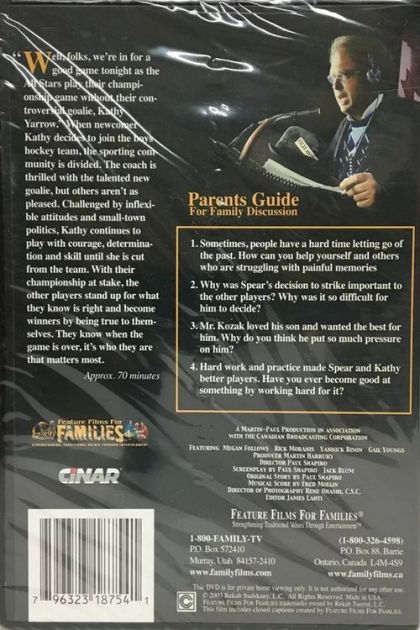 When a young girl wants to join her high school's hockey team as goalie, she meets with resistence, but also gets support, especially from the star forward of the team. Written by Kathy Li