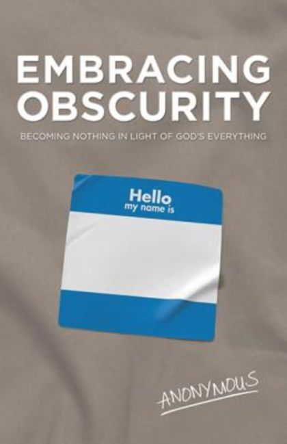 No matter how famous someone might be, the fact remains; most of the other seven billion people on Earth wouldn't know him or her from the next person. Add this reality to one's shrinking recognizability among the multiple billions down through history, and the worldly emphasis on standing out really falls flat; we're all in this obscurity thing together. Ironically, the trouble with me and you and the rest of humanity is not a lack of self-confidence but that we have far too much self-importance. To live and die unnoticed would seem a grave injustice to many. It's all too easy to think we're somebody if our portfolio is strong, there are a few letters after our name, or we're well-known at work, church, or school. As pride creeps in, we are tempted to want more: more recognition, more admiration, more influence, more, more, more. Few have ever given thought to wanting less. That's why we need Embracing Obscurity. Putting the premise into immediate action, an established Christian author electing to remain anonymous writes about living and dying in simplicity, contending that true success, as modeled by Jesus, starts with humility, service, sacrifice, and surrender. Such a life involves mystery and banks on the hope that today is just a dress rehearsal for eternity. When we stop imitating the world and instead choose to embrace obscurity, real life -- chock full of significance, purpose, and renewed passion -- begins.