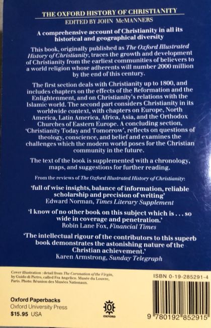 Now available in a compact, more convenient format, this book offers the same acclaimed text which first appeared in The Oxford Illustrated History of Christianity. Written by a team of expert scholars, this astonishingly comprehensive volume traces the history of Christianity from the Early Church to the present day exploring every aspect of the faith. The opening section takes events from the earliest Christian communities to 1800, and includes chapters on Eastern Christendom, Christianity and Islam, the Reformation, the Enlightenment, and the expansion of Christianity. The second section, covering the period from 1800 to the present day, is divided by geographical area and examines the impact of Christianity around the world from Britain and Europe, Africa, India, and the Far East. The final section, considering questions of theology, conscience, and belief, explores new images of the Christian community and provides a glimpse of the future of the faith. Authoritative and readable, The Oxford History of Christianity is essential for anyone interested in the enduring history of one of the world's most vibrant religious traditions.