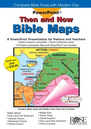 Then and Now Bible Maps PowerPoint will change the way you teach about the Bible forever! The fantastic bestselling ready-to-use PowerPoint allows pastors and leaders to show how maps from Bible-times compare with modern day geographical maps. Maps cover the areas for all major Bible stories.PowerPoint contains more than 60 slide frames, maps with modern-time "overlays." View it on a computer screen or use a digital projector. PowerPoint CD contains PC and MAC versions, teacher notes, handouts, as well worksheets in PDF format.Those you teach will be amazed to discover that countries they hear on the news all the time were once the biblical nations and cities they learned about in Sunday school or Bible study. Then and Now Bible Maps focus on these five key biblical areas. You can show each map with or without the modern-day overlays. Maps include: The Middle East during Old Testament Times With modern-day overlays The Middle East Assyrian Empire, Babylonian Kingdoms and Persian Empire The Holy Land during the time of the Old Testament With overlays of modern-day Israel The Holy Land during the time of Jesus With modern-day overlays Paul s Journeys (Roman Empire at AD 60) With modern-day overlays Microsoft PowerPoint users will love this easy-to-use presentation that includes enough material for two-to-four hours of lessons. Pastors and teachers can present select maps to emphasize a particular lesson and then add even greater relevance by showing your students where those Bible-time places are today. Handouts of the presentation are included on the CD-ROM and include slide images with room for note taking.Pastors and teachers will enjoy the presentation s flexibility. Present the PowerPoint in one setting or as a series of study sessions. Once loaded onto a computer, the teacher has flexibility as to how the information is presented: Rearrange the format for specific environment or time considerations Present at the speed that s best for study participants Or use only a portion of the information for a special presentation. USER MUST HAVE POWERPOINT 2001 OR NEWER TO OPERATE. WINDOWS AND MAC COMPATIBLE.