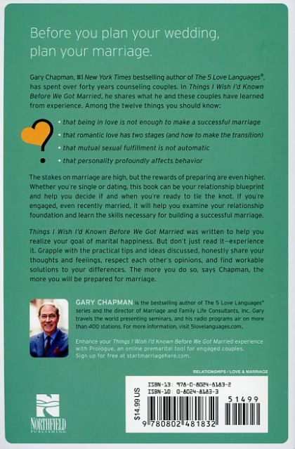 "Most people spend far more time in preparation for their vocation than they do in preparation for marriage,” Dr. Gary Chapman No wonder the divorce rate hovers around fifty percent. Bestselling author and marriage counselor, Gary Chapman, hopes to change that with his newest book. Gary, with more than 35 years of counseling couples, believes that divorce is the lack of preparation for marriage and the failure to learn the skills of working together as intimate teammates. So he put together this practical little book, packed with wisdom and tips that will help many develop the loving, supportive and mutually beneficial marriage men and women long for. It’s the type of information Gary himself wished he had before he got married. This is not a book simply to be read. It is a book to be experienced. The material lends itself to heart-felt discussions by dating or engaged couples. To jump-start the exchanges, each short chapter includes insightful “Talking it Over” questions and suggestions. And, the book includes information on interactive websites as well as books that will enhance the couples experience. Dr. Chapman even includes a thought-provoking appendix. By understanding and balancing the five key aspects of life, dating couples can experience a healthy dating relationship. A revealing learning exercise for dating couples is included at the end.