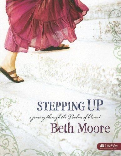 Stepping Up: A Journey Through the Psalms of Ascent - Bible Study Book by Beth Moore provides a personal study experience five days a week plus viewer guides for the group video sessions of this in-depth women's Bible study of Psalms 120-134. Traveling pilgrims sang these psalms both on the way to the great festivals of the LORD and as key elements of the worship at those festivals. Just as a song or poem can express feelings of fear, doubt, hope, and joy, these 15 psalms model how we can voice our own petitions and praises to our God, who is always available and ready to hear us. Explore the major feasts of Israel and journey with Beth through this 7-session study. Themes of unity, joy, gratitude, redemption, repentance, the power of blessings, facing ridicule, and more are explored in detail. Modern-day believers in Jesus Christ can learn much from these treasured Psalms in their journey toward greater intimacy with God. The Bible Study Book Includes: Six weeks of personal interactive study for five days a week Viewer guide for use with the DVD teaching sessions Map of the Old Testament Jerusalem Temple