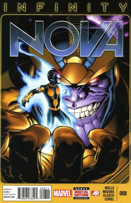 Infinity tie-in! - Nova's first taste of the power of a mad cosmic god threatens to--blah blah blah... Look, NovaNauts, this one's huge! Get it before we make a movie out of it!