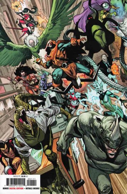interrupted by a RAMPAGING RHINO who is but the tip of a sinister iceberg. What major Spider-Villain is working behind the scenes weaponizing other Spider-Villains including one we haven't seen in OVER SEVEN YEARS?! Also, what is that Goblin-free Norman Osborn up to anyway?