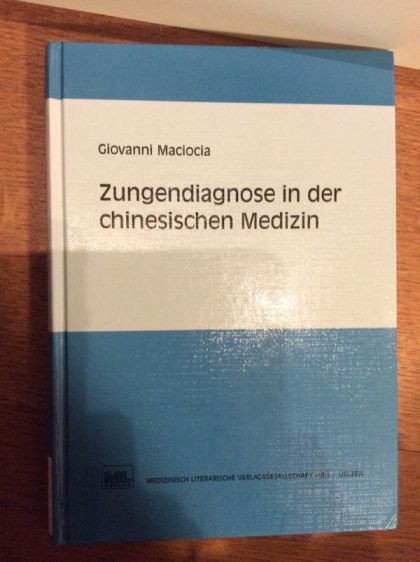 German language hardcover book. Zungendiagnose in der chinesischen Medizin, by Giovanni Maciocia, translated by Wolfgang Schreiner. The book is illustrated with colour photos and drawings.
