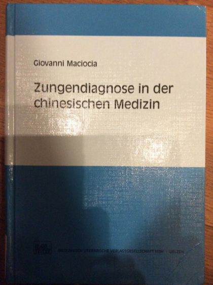 German language hardcover book. Zungendiagnose in der chinesischen Medizin, by Giovanni Maciocia, translated by Wolfgang Schreiner. The book is illustrated with colour photos and drawings.