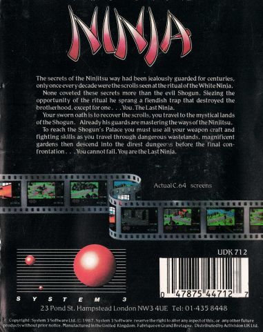 Only you--the Last Ninja--can avenge the Brotherhood and recapture the secrets of the Ninja.