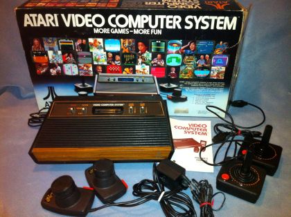 The Atari 2600, originally sold as the Atari Video Computer System or Atari VCS until November 1982, is a home video game console from Atari, Inc. Released on September 11, 1977, it is credited with popularizing the use of microprocessor-based hardware and games contained on ROM cartridges, a format first used with the Fairchild Channel F in 1976. This contrasts with the older model of having dedicated hardware that could play only those games that were physically built into the unit. The 2600 was bundled with two joystick controllers, a conjoined pair of paddle controllers, and a game cartridge: initially Combat, and later Pac-Man