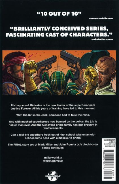 Uneasy lies the head that wears the crownand that goes double for the cowl! Kick-Ass is now leading the reformed superhero team Justice Foreverjust in time to face some terrifying new foes. But there's dissension in the JF ranks; will he be able to fend off a coup with Hit-Girl still in prison? Meanwhile, a broken Red Mist gets some tough love from Mommie Dearest.