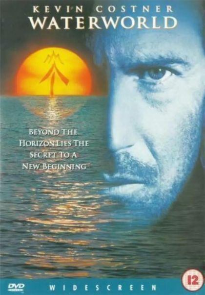 Hailed as Kevin Costner's SciFi version of "Heaven's Gate," Waterworld takes place in a future where no-known land exists because the polar ice caps have melted - drowning the world and killing off most of humanity. Now the beraggled remanents of humanity live on floating islands of scavanged wood and dirt is a commodity more precious than gold. Now in one floating wood island, a child has been discovered with a tatoo on his back that is a map leading to the only remaining land above the water. It quickly becomes a race between the good and bad guys as to who will grab the kid and take posession of the only Terra Firma left in the future.