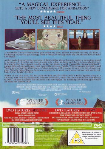 Chihiro (main character, 10 year old girl) and her parents find an abandoned park while traveling to their new home. The park only seems deserted and is inhabited by spirits that come out in the dark to enoy themselves in the spirit bathhouse. Chihiro's parents turn into pigs, but Chihiro meets a young boy Haku that helps her get a job at bathhouse from witch Yubaba and remain safe. While working at the bathhouse, Chihiro cleans a polluted river spirit that gives her a special medicine. A strange spirit No Face also appears and starts giving gold to all the greedy spirits, devouring them after that. Haku, that can take a form of a dragon gets attacked by strange paper birds, that turn out to be sent by Zeniba, a twin sister of the witch Yubaba. He stole her gold seal and she Zeniba turns Yubaba's gigant baby into a mouse, and her pet bird into a fly. In order to help Haku Chihiro gives him half of the herbal medicine, but he is still ill. She gives the other half to the rampaging spirit thereby making him vomit all the spirits he devoured. She decides to go to Zeniba and beg her to forgive haku. Chihiro gets train tickets from Kamaji, the boiler man and goes to Zeniba together with Yubaba's baby (now a mouse), bird and the spirit No Face. It turns out that Zeniba is a good witch, unlike her sister and tells Chihiro that Haku has already been healed. Haku goes to Yubaba and demands that she lets Chihiro and her parents go, in return for her giant baby Boh that has followed Chihiro (in the form of a mouse). Haku picks up Chihiro and brings her back to Yubaba. She now must guess witch pigs are her parents. She says that none of them are, and since she guessed correctly she and her parents are allowed to leave.