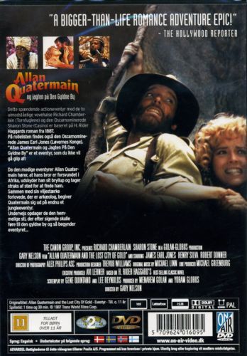 Alan Quatermain’s (Richard Chamberlain) brother Robeson (Martin Rabbett) while searching in Africa for a lost tribe of white people. Jessie (Sharon Stone) is a fellow explorer and Alan’s fiancée. Alan is also accompanied by a warrior, Umslopogaas (James Earl Jones), and a mystic, Swarma (Robert Donner). While going through the jungle and searching for his brother, Alan comes across the Lost City of Gold. Robeson seems fine, but there is a greedy smuggler named Agon (Henry Silva) pretending to be a priest. Alan and his friends also get themselves in trouble because they kill a sacred lion outside the gates of the city. They and Robeson must try to free the city’s people.