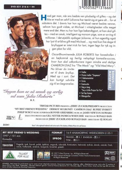 Almost as soon as Julianne Potter (Julia Roberts) realizes she has finally fallen in love with her best friend Michael (Dermot Mulroney), he calls and tells her that there will, in fact, be a wedding. The problem is, he's marrying another woman. As the wedding preparations are made, Julianne tries everything in her power to prevent Michael’s wedding to blonde bombshell Kimberly (Cameron Diaz) and to try and steal her place at the altar. Little does Julianne know, Kimberly could also become a best friend herself. Both slapstick and sweet, “My Best Friend’s Wedding” is a classic romantic comedy that leaves you laughing and crying all the way down the aisle.