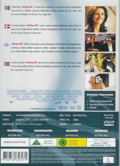 Anna Scott is the "it" actress in Hollywood. Her love-life is not ideal, and the tabloids are rampant. William Thacker runs a travel book shop in the Notting Hill district in London. He's divorced and sharing his house with Spike, a unique character. Fate, and a poorly-timed glass of orange juice, bring Anna and William together. How does a sweet, ordinary guy bring around an internationally-known film star to meet the gang? How does one of the most recognizable people in the world get to know a sweet, ordinary guy? Can two people from such different spheres find happiness? Watch Notting Hill to find out.