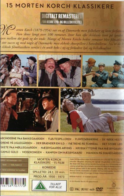 This collection contains: - Vagabonderne på Bakkegården (1958) - Mosekongen (1950) - Flintesønnerne (1956) - Brødrene på Uglegaarden (1967) - De Røde heste (1950) - Der brænder en ild (1962) - Det Gamle guld (1951) - Det Skete på Møllegården (1960) - Det Store løb (1952) - Fætrene på Torndal (1973) - Næsbygårds Arving (1965) - Manden på Svanegården (1972) - Fløjtespilleren (1953) - Kampen om Næsbygård (1964) - Krybskytterne på Næsbygård (1966)