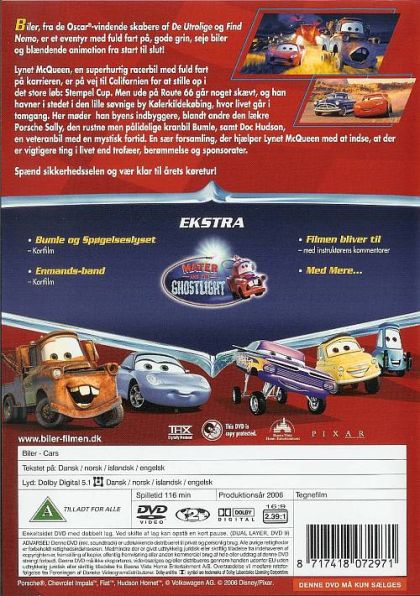 A full-of-himself race car "Lightning McQueen" slides out of his transport truck "Mack" on his way to a three-way tie-breaking race. He ends up in a forgotten town on route 66. With the help of a tow truck named "Mater" and a Porsche named Sally, he learns that there are more important things than winning - like friendship, helping others and love.