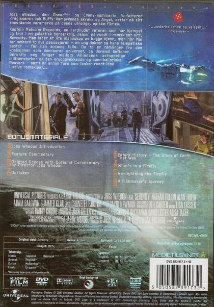 The product of Joss Whedon’s imagination, the film “Serenity” is based upon the popular Sci-Fi Channel series “Firefly”, which, to the dismay of its loyal fans, was canceled after one season. The plot follows Malcolm Reynolds (Nathan Fillion), captain of the mercenary space ship Serenity, which is struggling to find work while staying below the notice of The Alliance, an authoritarian government which now controls the majority of the known galaxy. River Tam (Summer Glau), a mentally unstable teenage prodigy and her older brother Simon (Sean Maher) are wanted by The Alliance and seek refuge aboard Serenity. The Alliance has now recruited a deadly and ruthless operative (Chiwetel Ejiofor) to find and kill River. On the run from The Alliance and in constant danger of attacks from Reavers (psychotic cannibals roaming the galaxy), Captain Reynolds and his crew must expose the awful secret hidden within River’s mind to bring down The Alliance, no matter what the cost.