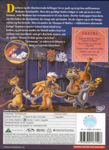 Duchess, the mother cat, and her kittens Berlioz, Marie, and Toulouse live a privileged life with wealthy Madame Bonfamille. However, when Madame's butler, Edgar, overhears her telling her lawyer that in her will she will leave everything to Edgar after the cats are taken care of for life, Edgar decides to do the cats in. Edgar kidnaps the cats thinking he'll drown them in the river. However, intimidated by two dogs, he drops the basket on the riverbank instead. When Madame realizes the cats are gone, the resident mouse, Roquefort, goes out searching for them. The cats, meanwhile, find themselves out in a world they never knew. Luckily, they are befriended by Thomas O'Malley the alley cat who helps them get back home. When they arrive, Edgar puts them in a sack and puts the sack in a trunk. Roquefort calls Thomas for more help. Thomas and his alley cat friends foil Edgar's plots.