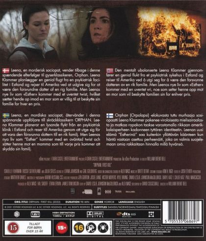 After escaping from an Estonian psychiatric facility, Leena Klammer travels to America by impersonating Esther, the missing daughter of a wealthy family. But when her mask starts to slip, she is put against a mother who will protect her family from the murderous “child” at any cost.