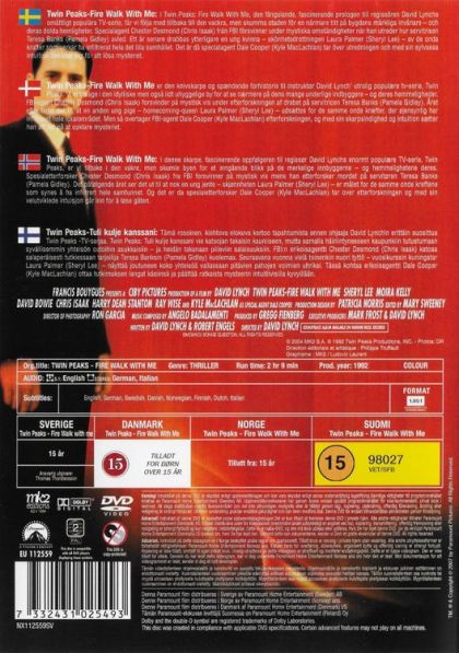 The shocking and sometimes disturbing prequel to David Lynch's acclaimed TV series. Focused on the last seven days in the life of high school student Laura Palmer (Sheryl Lee), the film looks at the underside of small-town America in the town of Twin Peaks, Washington, and the many secrets lying just beneath the surface. A serial killer has struck the Northwest, investigated by Special Agent Dale Cooper. (Kyle McLachlan) Meanwhile, Laura's life is not quite what it seems, and her friend Donna Hayward (Moira Kelly) begins to see a new side to Laura's previously squeaky clean image. Laura's father, Leland Palmer (Ray Wise) also begins to learn things about his daughter and himself that he never suspected and may never truly believe!