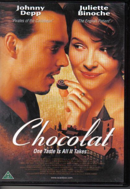 A woman, Vianne Rocher (Juliette Binoche) comes to a sleepy French provincial town and creates a stir by opening a chocolate shop. The stern townspeople view her with distrust. However, Vianne befriends an old woman, Amande Voizin (Judi Dench), who is a diabetic and does not speak to her daughter. Vianne also befriends an abused wife (Lena Olin). Little by little, some of the people begin to be seduced by Vianne’s wonderful, sensual chocolate. The townspeople become accustomed to the presence of Vianne, but then a group of wandering Gypsies stops at the town. Vianne befriends their leader Roux (Johnny Depp), and a romance develops between them. But there is a destiny Vianne believes she has to fulfil: she has to roam the world, spreading her magic chocolate everywhere, just as her mother before her, a Maya princess, used to do. Will Vianne pack her belongings and once more set off on her wonders, dragging her reluctant daughter, or is there something that will make her remain in the small French town?