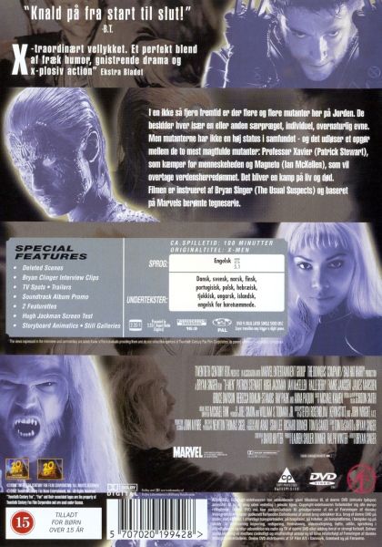 Based on Marvel’s hugely popular comic book series, X-Men is the first in a trilogy of movies. Set in the not too distant future, rare genetic mutations give certain individuals, called mutants, fantastic powers. Shunned by the rest of society because of their differences, they are split into two factions: those who seek to live in harmony with humans and those who wish to dominate them. As tensions mount, the groups find themselves battling each other and the intolerant government which seeks to destroy them. Directed by Brian Singer, the film features the characters of Charles Xavier, Magneto, Jean Grey, Cyclops, Wolverine, Rogue, Storm and Sabertooth.