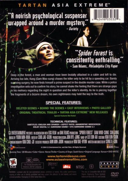 TV Producer Kang Min enters Spider Forest for a documentary. He enters a cabin and discovers two brutally murdered bodies. One is his girlfriend Hwang Soo-Young and the other is his colleague Choi Jong-Pil. Kang Min also senses someone watching him and runs after that person into to the forest. He's soon knocked unconscious. When he awakens again he continues his chase into a tunnel. Kang Min is then struck by a speeding car.