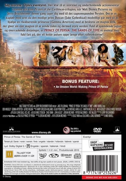 A rogue prince (Jake Gyllenhaal) reluctantly joins forces with a mysterious princess (Gemma Arterton) and together, they race against dark forces to safeguard an ancient dagger capable of releasing the Sands of Time—a gift from the gods that can reverse time and allow its possessor to rule the world. Based on the action-adventure video game of the same name.