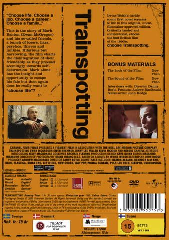 Trainspotting is a film about a group of heroin addicts in Edinburgh, Mark Renton (Ewan McGregor), Spud (Ewen Bremner) and Sick Boy (Jonny Lee Miller). Their friends Tommy (Kevin McKidd) and Begbie (Robert Carlyle) criticise heroin use; the former is an athletic person, and the latter a drunk. Tommy succumbs to heroin after his girlfriend leaves him. Renton and Spud are caught stealing from a department store. Spud is imprisoned, while Renton volunteers for a drug treatment programme. Since he goes back to heroin, his parents lock him up in a room. Free of his habit, Renton moves to London, gets a job, and begins to settle. He is not pleased when Begbie and Sick Boy join him. They learn of Tommy’s death, return to Scotland and find Spud, now out of jail and drug-free. They all decide to make some money in a drug deal. Their plan is successful, but while they celebrate Begbie attacks a man with a knife, and cuts Spud’s hand. Renton realises that these people, with the exception of Spud, are not his friends, and decides to start a new life – with the money from the drug deal.