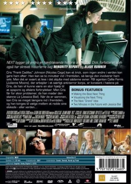 A Las Vegas magician who can see into the future is pursued by FBI agents seeking to use his abilities to prevent a nuclear terrorist attack.