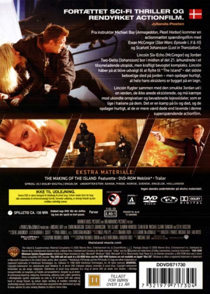 Lincoln Six-Echo is a resident of a seemingly Utopian but contained facility in the mid 21st century. Lincoln hopes to be chosen to go to the "The Island" the last uncontaminated spot on the planet. But Lincoln soon discovers that everything about his existence is a lie.