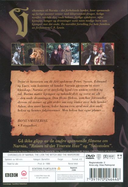 The Penvensie children are sent to stay in the country because of the war. Evacuated to a big house in the country, four children discover a mysterious wardrobe which serves as a portal to another world.