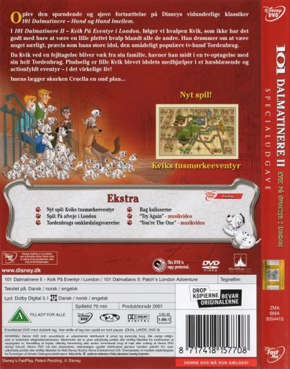 A direct-to-video sequel Roger, Anita and their canine clan are packing for the big move to Dalmatian Plantation, a home in the country with plenty of room for the 101 pups and far from the clutches of Cruella DeVil. The feistiest pup, Patch, feels lost in a sea of spots and longs to be a one-of-a-kind wonderdog like his TV hero,.