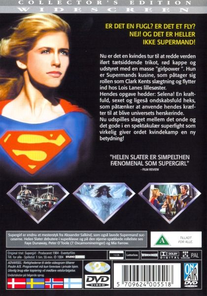 “Supergirl” is a film that explains how niece of Superman, Kara-Zor El (Helen Slater) belonged to a colony of Kryptonians who survived the destruction of the planet Krypton. When her friend Zaltar (Peter O'Toole) allows her to play with the matter creating Omegahedron an accident happens and the Omegahedron is whisked out into the depths of space and is lost. Now without the power to sustain their city, the last remaining Kryptonians will surely die. Kara leaves the city to search for the sphere only to find it its landed on Earth. A planet that the yellow sun that shines down upon it grants her superhuman powers and allows Kara to take up mantle of Supergirl. However the Omegahedron has fallen into the hands of the dark sorceress, Selena (Faye Dunaway) and Selena possesses the one thing that renders Supergirl weak other than Kryptonite and that is magic. Now it’s a battle of wits not strength to win back the Omegahedron and save her dying people.