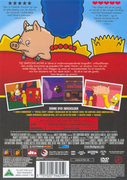 The movie starts off with the popular cartoon series in the Simpsons, Itchy and Scratchy. Homer (Dan Castellaneta) complains about a movie based on a cartoon. Green Day wants to talk about the environment, but dies. At their funeral, Grampa has a vision, but only Marge (Julie Kavner) takes him seriously. Lisa (Yeardley Smith) talks to the city about pollution. The mayor orders everyone to stop polluting. Homer dares Bart (Nancy Cartwright) to skate naked. Bart is caught by Chief Wiggum (Hank Azaria). Homer arrives, and they go into Krusty Burger. Krusty (Dan Castellaneta) is about to kill a pig, when Homer adopts him. Homer dumps the pig's waste in the lake. The lake gets polluted, and the town gets trapped in a big dome. The town discovers Homer caused it, and goes after him. The Simpsons escape and moves to Alaska, where Marge discovers that the government is trying to destroy Springfield. Marge and the kids go to save it, while Homer stays. Homer then has a vision, and goes to save Springfield. The bomb is lowered through a hole, and the citizens try to escape through it. Homer arrives, and takes the bomb with Bart. They ride a motorcycle around the dome, and throw the bomb through the hole. The bomb explodes, causing the dome to shatter, and restoring Springfield to the way it was.