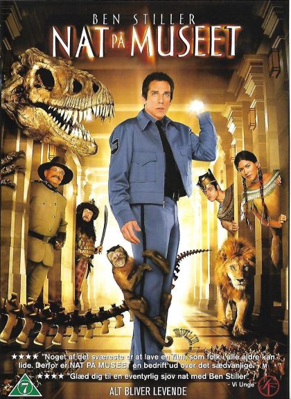 Night at the Museum is an action-adventure movie in which a father, struggling for acceptance by his son, is torn between a dream job as an inventor and finding a dull, steady job. He is pushed to the wire when his ex-wife will not allow him to visit his son unless he finds gainful employment and an acceptable place to live. The downtrodden father then finds a job as a night watchman for the local natural history museum, which definitely seems dull and steady. Things take a surprising turn at night, when things are not as quiet as they seem at the museum. The resulting nightly adventures give plenty of excitement to the man's job, and also provide the promise of gaining his son's trust back.