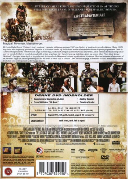 The Last King of Scotland is about Dr. Nicholas Garrigan, a newly qualified doctor who decides to go to Africa to practice medicine on a gap year. He arrives during the uprising of Idi Amin who takes a liking of him because he is Scottish. He soon becomes a friend and advisor to Amin before things start going awry. Dr Garrigan takes a fancy to one of Amins wives and later he realises the seriousness he has got himself into when his passport is removed and he has to remain in Uganda almost as a pet of the great leader who seems to becoming more deranged by the day.