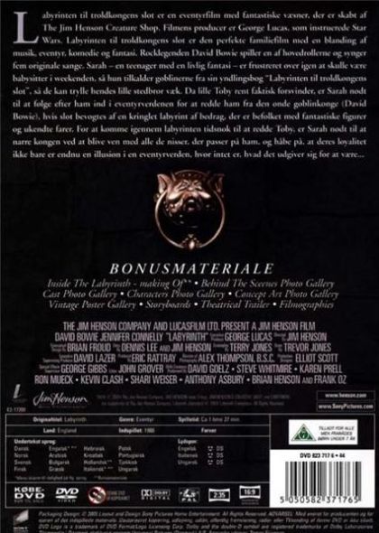 One night a teenage girl, Sarah, is left to babysit her younger brother while her parents go out. While trying to keep her baby brother from crying she starts to tell him a story about the Goblin King. In this story the Goblin King takes children away from their families. This story becomes reality as Sarah, played by Jennifer Connelly, goes after her brother who is taken and in the castle of the Goblin King Jareth, played by David Bowie, which is in the middle of a labyrinth. On her jouney she encounters many strange beings and dangerous obstacles, but she is persistant as she must save her brother before its to late, and he too becomes a goblin.