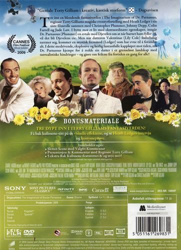 Doctor Parnassus (Christopher Plummer) runs a traveling theater troupe. Their stage show involves a magical mirror which sucks people in to the world of imagination, where they are ultimately forced to choose between enlightenment and darkness. Parnassus reveals that most of his life is directed by a series of deals he made with the devil, who goes by the name of Mr. Nick (Tom Waits). Included among these deals is that Mr. Nick will take possession of the soul of Doctor Parnassus’s daughter Valentina (Lily Cole) on her 16th birthday. Parnassus and Mr. Nick make a new bet to see who can collect five souls first. The stage show’s newest member, Tony (Heath Ledger), lures new audience members in to choose. When Tony himself enters the mirror, he takes on different appearances (Johnny Depp, Jude Law, Colin Farrell) and tries to help Parnassus and Valentina win over Mr. Nick.
