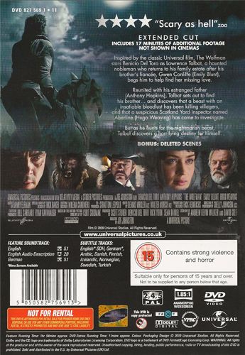 The little Hamlet of Blackmoor is where Talbot (Benicio del Toro) spends his time alone and recovering from an attack until his brother’s fiancée Gwen Conbliffe (Emily Blunt) finds him and lures him into a search for her lost love. When he returns home he finds out that something is killing the villagers and that Scotland Yard inspector Aberline (Hugo Weaving) is on the investigation. Talbot starts to put the pieces of the puzzle together when he discovers the tale of an ancient curse that turns the sick and vulnerable into Werewolves during the full moon. It is Talbot’s task now to destroy the creature and save both the villagers and Gwen, the girl he realizes he loves. In his quest he will discover things that he never imagined.